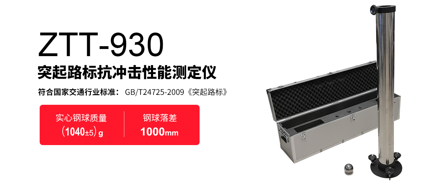 ZTT-930突起路標耐沖擊性能測試儀是北京天地星火科技發展有限公司專為生產、質量監督、工程施工和監理等單位測量突起路標抗沖擊性能而設計和生產的。具有結構合理、操作簡單、適用性廣、測量精度高、測量安全及可靠性好等特點。ZTT-930 突起路標抗沖擊測定儀完全符合我國交通行業標準 GB/T24725-2009《突起路標》、JJG(交通) 080-2020《突起路標耐沖擊性能測試儀檢定規程》中對路標抗沖擊性能試驗的要求。