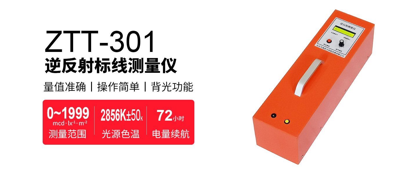 ZTT-301型逆反射標線測量儀是用來測量道路標線反光性能的一種專用光學測量設備,測量的參數是標線的逆反射系數R’(或稱比亮度),單位為mcd·lx-1·m-2。該儀器操作簡便,量值可靠,即可用于實驗室也可用于現場測量,是生產、質量監督、工程施工、監理和教學科研等單位測量公路標線逆反射光學性能的首選儀器。該儀器參照國際相關技術文件,以及我國現行的國家標準和規范設計研制。符合國際照明委員會(CIE)出版的第72號,美國ASTM D4061-94,德國DIN67520,67521以及我國GB/T 26377-2010《逆反射測量儀》,GB/T 16311-2009《道路交通標線質量要求和監測方法》, JJG(交通)059-2004《逆反射測量儀檢定規程》,DB36T978-2017《雨夜道路交通反光標線質量要求和檢測方法》,DB51T 2429-2017《雨夜公路交通反光標線質量要求和檢測方法》,JJF1809-2020《逆反射測量儀校準規范》等相關標準的要求。