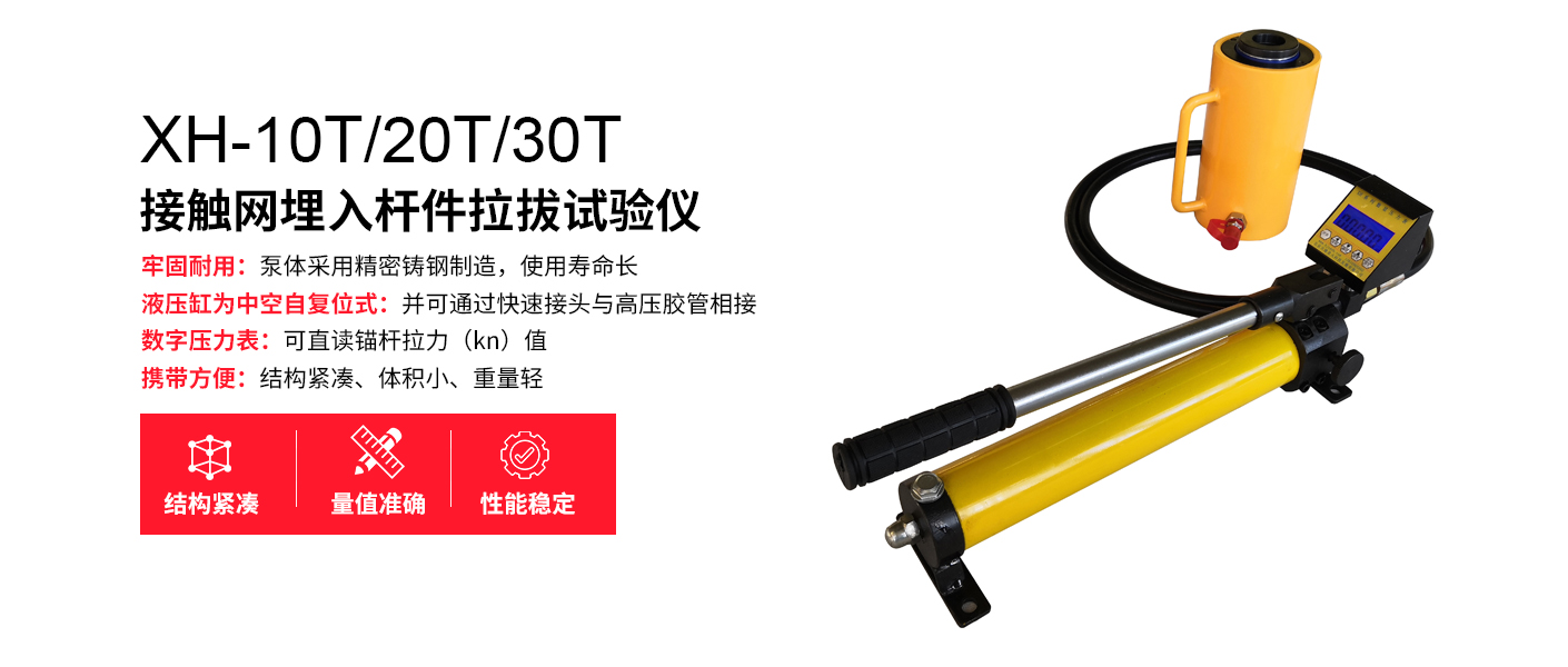 XH-10T/20T/30T型接觸網埋入桿件拉拔試驗儀接觸網埋入桿件拉拔試驗儀是一種專門用于測試接觸網系統中埋入桿件(如錨栓、支撐桿等)與基材之間附著強度的設備。通過施加垂直的拉拔力,該儀器能夠測量埋入桿件的附著性能,適用于鐵路接觸網等交通工程領域,確保桿件的穩定性和系統的正常運行。