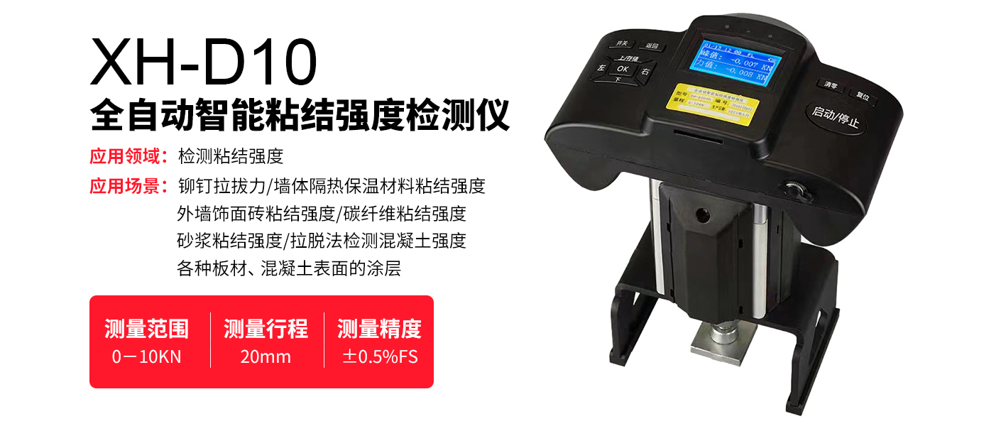 XH-D10全自動智能粘結(jié)強度檢測儀用于檢測建筑工程粘結(jié)強度;涂層附著強度(附著力)。