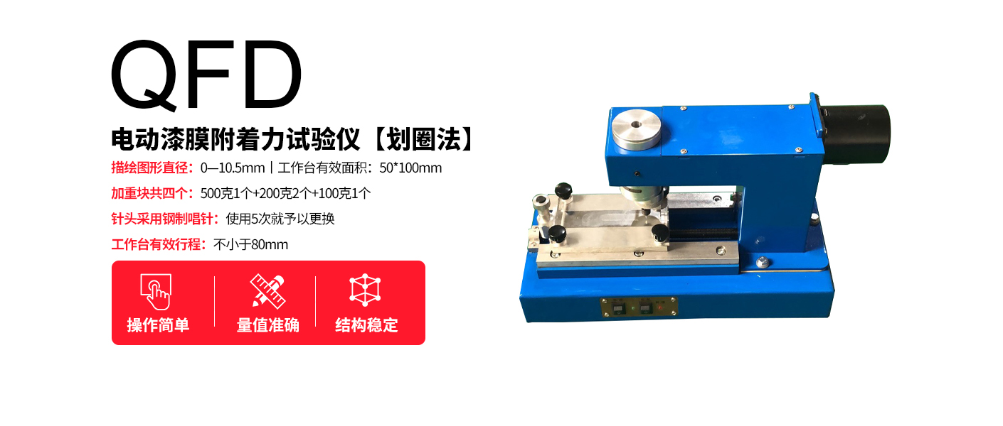 QFD型電動漆膜附著力試驗儀適用于測定各種涂膜對被涂物表面的附著能力。